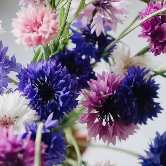 Niveau: MakkelijkCentaurea cyanus ‘Ball Mix’ (korenbloem) BIO