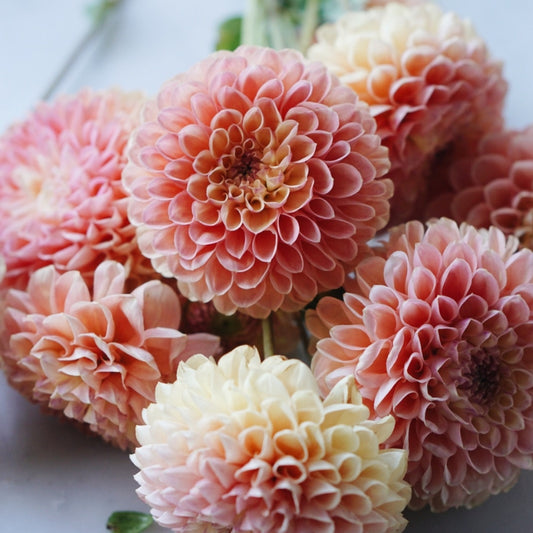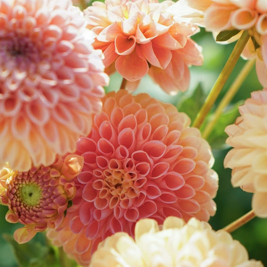 We kiezen onze collectie dahlia's met veel zorg uit. De belangrijkste eisen? Een sterke bloem, veel productie én goed te combineren met andere soorten. Zo weet je zeker dat deze collectie altijd bij elkaar past en een prachtig boeket kan vormen.