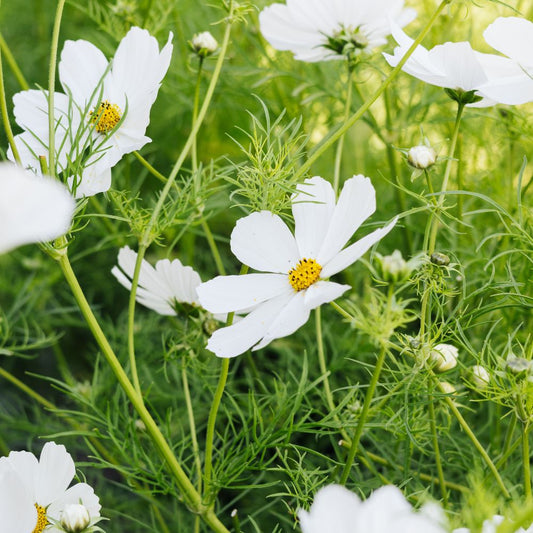Cosmos bipinnatus ‘Fizzy White’ (cosmea)