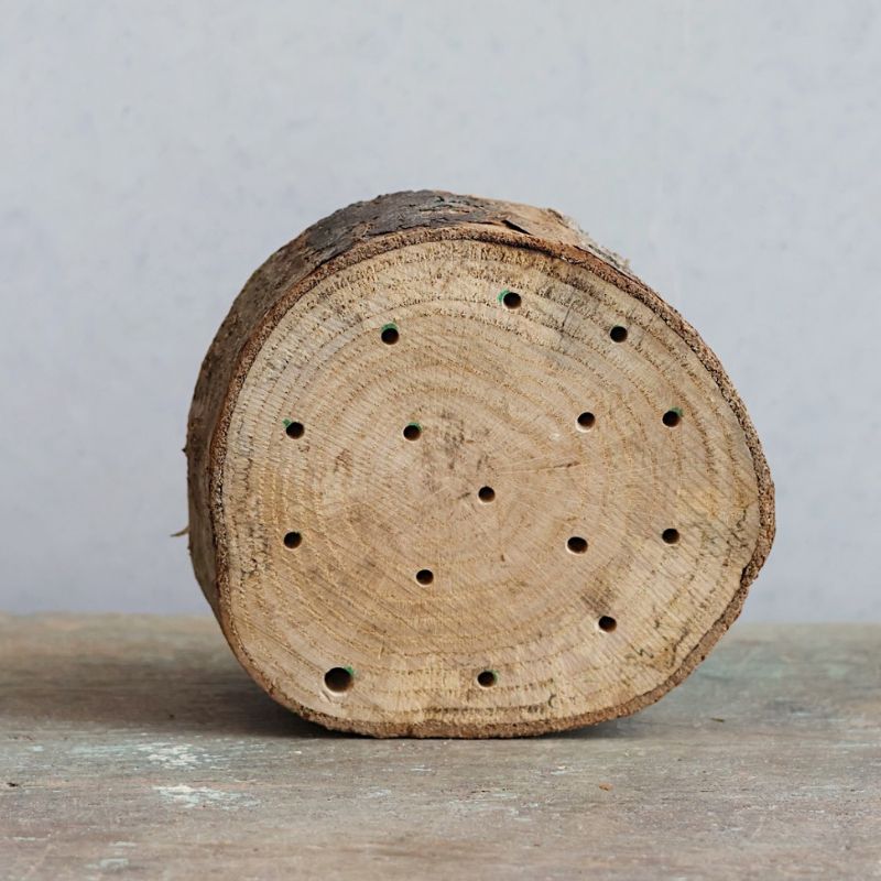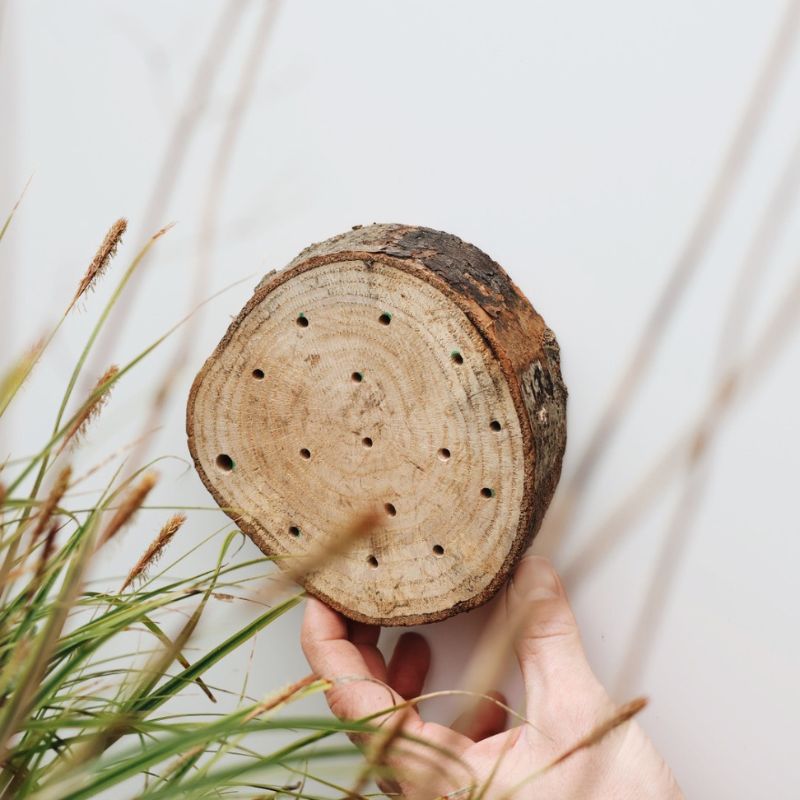 Wist je dat de tronkenbij z'n bijenhotel schoonmaakt? Let maar eens goed op in de lente, dan zie je ineens hoopjes zaagsel onder het bijenhotel. Dat hebben ze er keurig uitgeveegd, zodat het bijenhotel weer klaar is voor een nieuw seizoen. Tronkenbijen hebben een dikkere plak hout nodig zodat de gangen een stuk dieper zijn én de holtes moeten smaller. Ze zijn kieskeurig, die tronkenbijen! In het vroege voorjaar leggen ze er hun eitjes in. De holtes zijn goed geschuurd zodat er geen rafels in zitten. Daar trekken de bijen hun vleugels kapot aan. Het is dus heel belangrijk dat het hout glad is.
