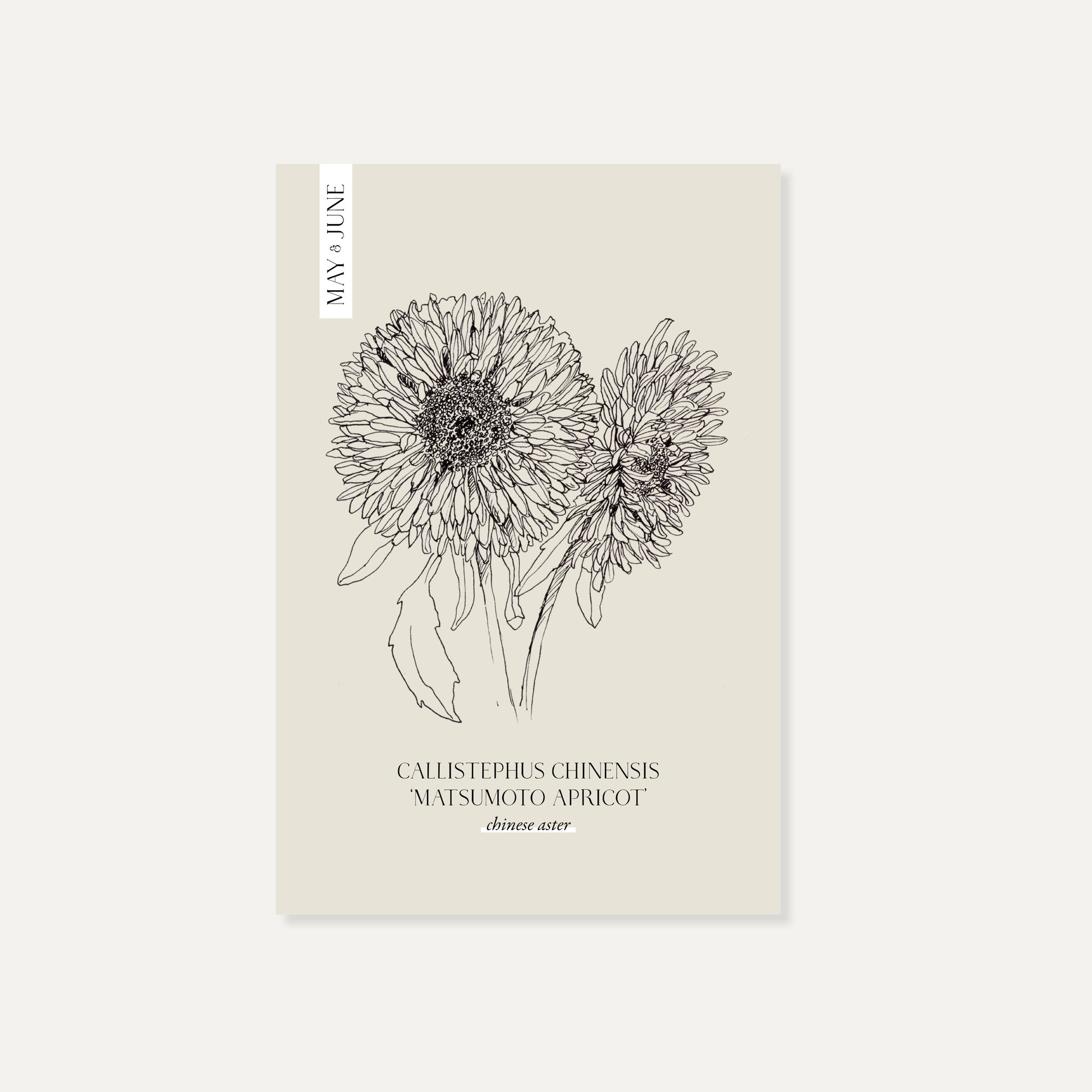 Chinese asters zijn terug van weggeweest. Waar ze eerder als truttig werden gezien heb je nu soorten die het midden houden tussen dahlia's en zinnia's. Deze kleinere bloem in de Matsumoto-serie heeft een zachte abrikooskleur en is de perfecte toevoeging in je pluktuin.