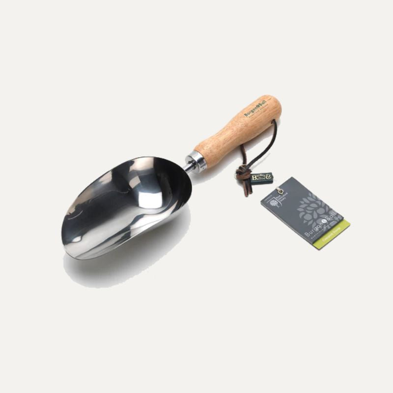 Wij bewaren onze compost en potgrond in grote zinken emmers met deksel. Daaruit scheppen wordt veel makkelijker met een compostschep. Dit schepje van Burgon & Ball is daar ideaal voor, met name door de verhoogde randen en de bolle vorm. Je kunt zo veel meer potgrond in één keer scheppen.