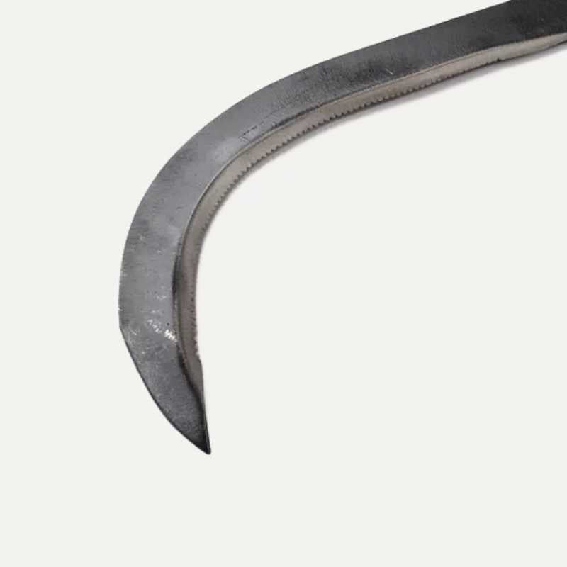 Vanwege de knik in het staal en het gebogen mes van deze sikkel is groenten afsnijden nog gemakkelijker. Zo gaat het oogsten van broccoli, bloemkool en andere kolen veel sneller.