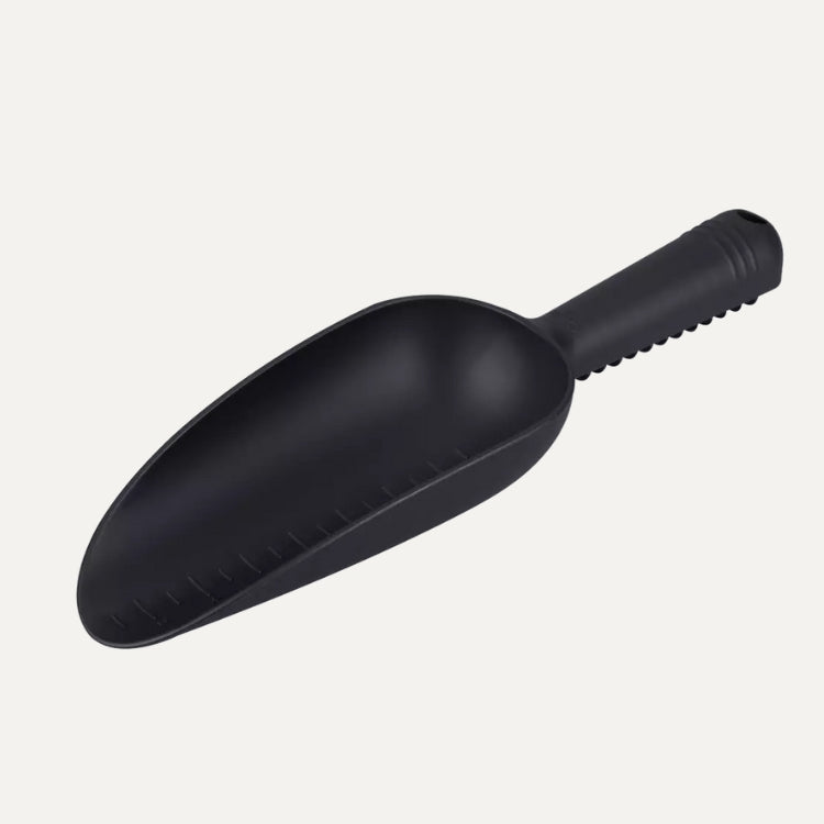 Handig schepje om te gebruiken in de tuin. Judith bewaart 'm in een zinken ton met potgrond om de potgrond makkelijk te kunnen scheppen in de tuintray. Gemaakt van 100% gerecycled plastic. Alle producten van Elho worden in Nederland geproduceerd met hulp van windenergie.