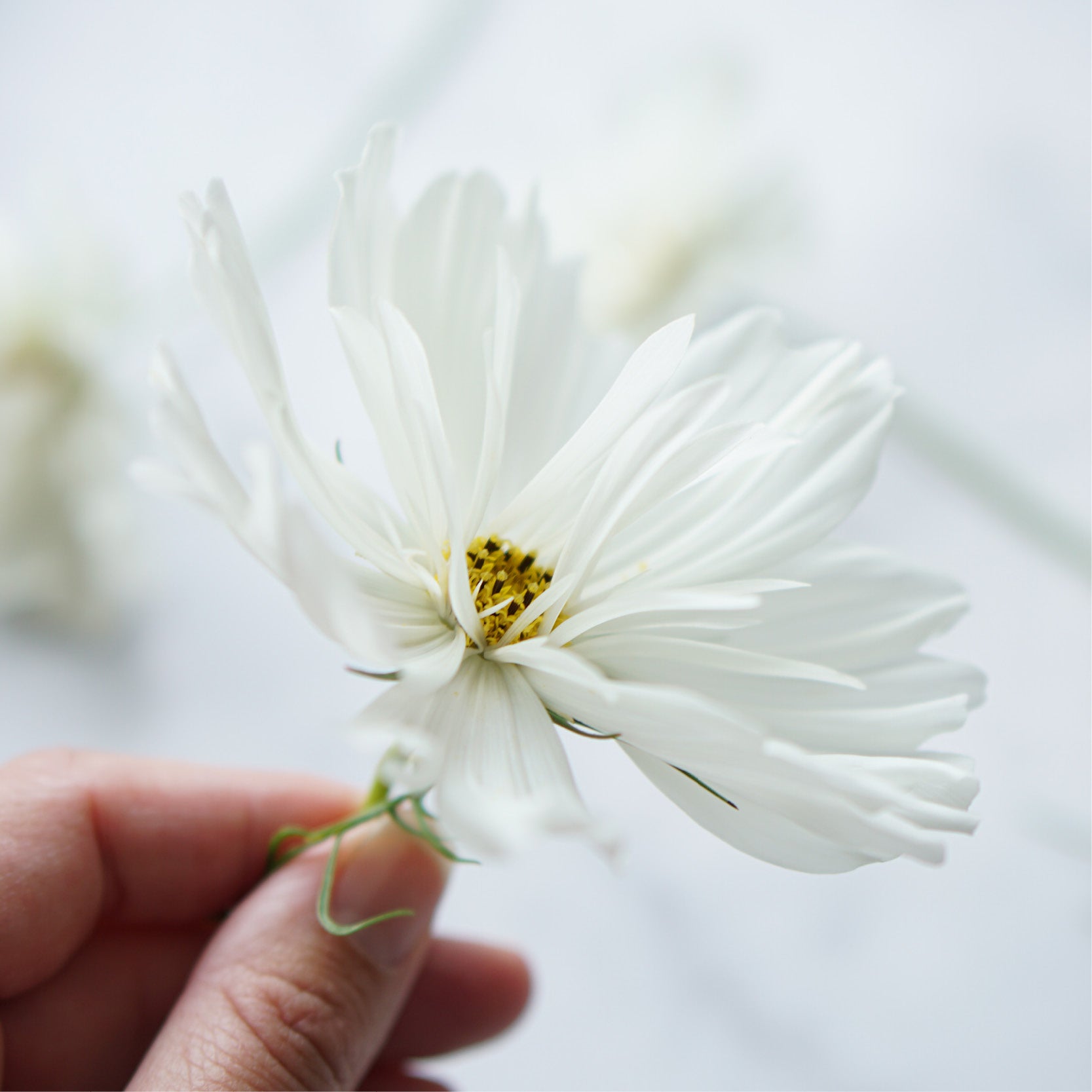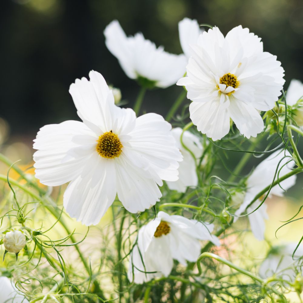 Cosmos bipinnatus ‘Fizzy White’ (cosmea)