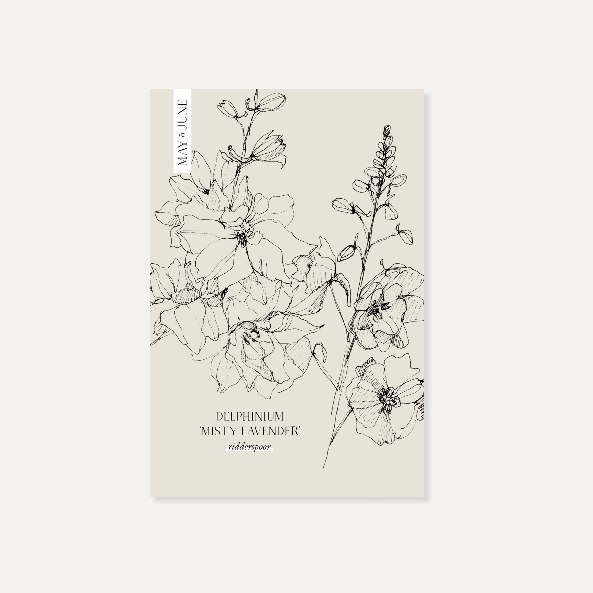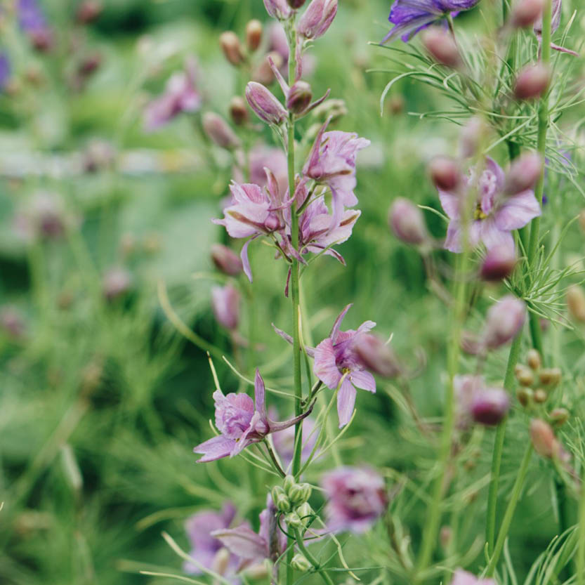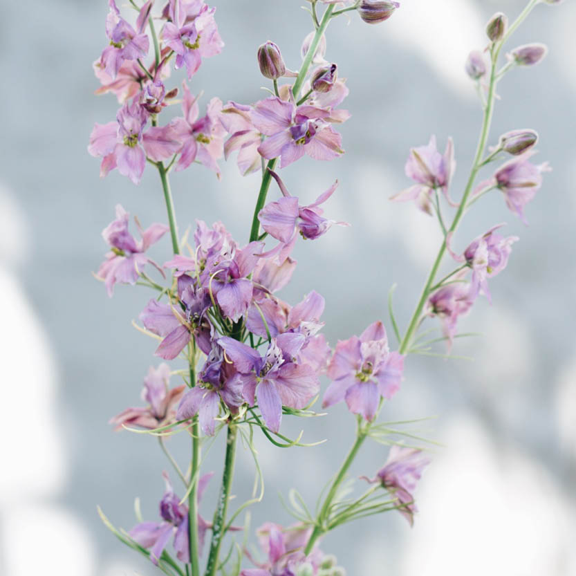 Delphinium ‘Misty Lavender’ is een ridderspoor zoals je (denken we) nog niet kent. Veel slanker omdat ze eenjarig is en geen vaste plant, maar met de mooiste kleur bloemen. Oprecht één van de meest bijzondere bloemen, we werden er in en in gelukkig van dit jaar.