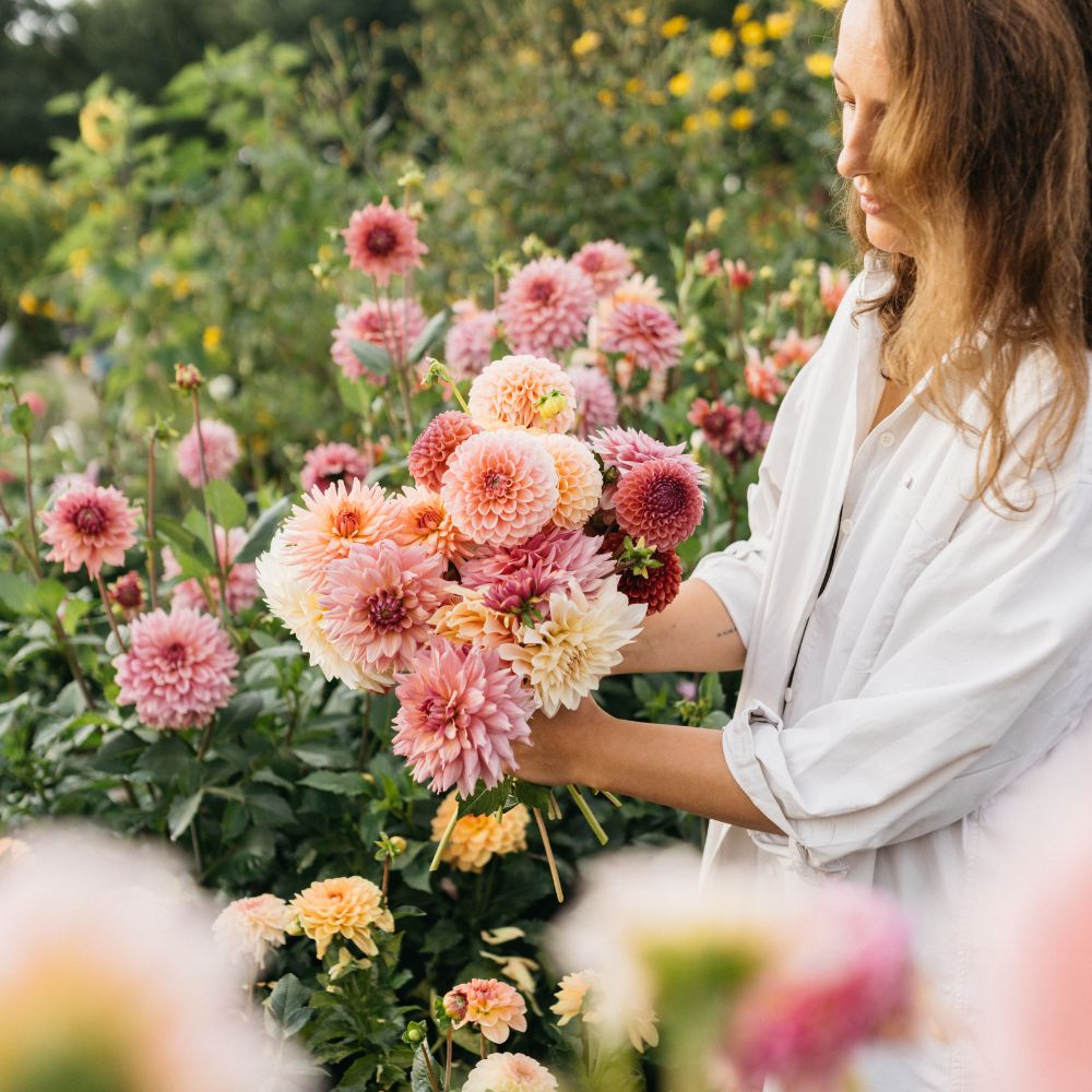 We kiezen onze collectie dahlia's met veel zorg uit. De belangrijkste eisen? Een sterke bloem, veel productie én goed te combineren met andere soorten. Zo weet je zeker dat deze collectie altijd bij elkaar past en een prachtig boeket kan vormen.