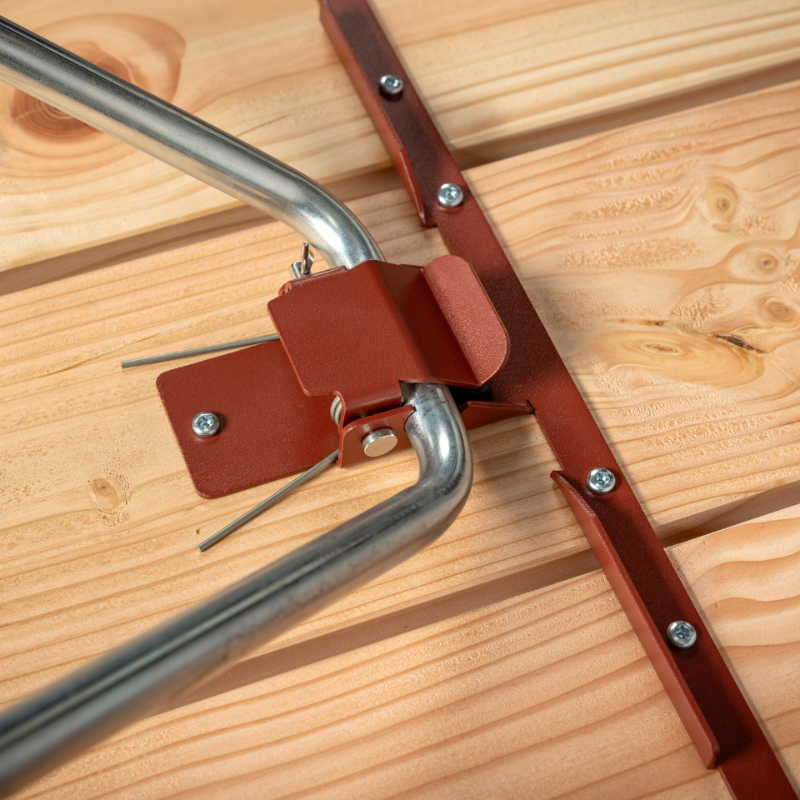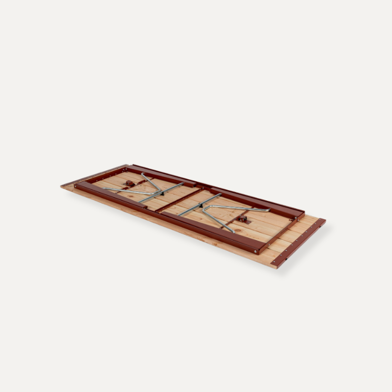 Opklappen, opzetten, genieten: dankzij het slimme vouwsysteem staat de hele set binnen seconden. Rubber eindkappen voorkomen schade bij stapelen of transport. Gemaakt van Europees Douglashout en gepoedercoat staal, is de set weerbestendig en geschikt voor gebruik het hele jaar door.