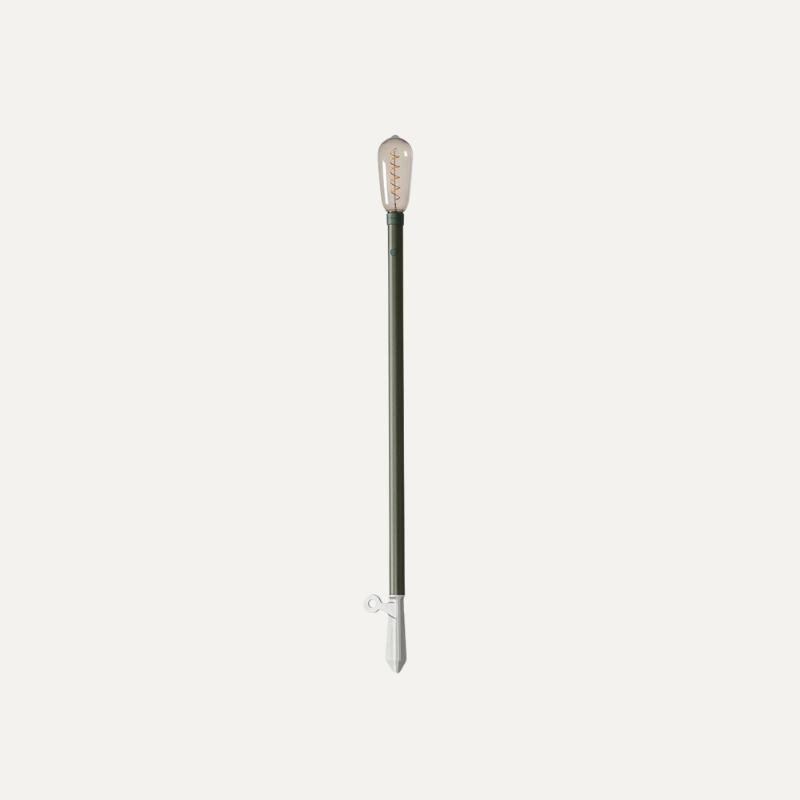 De Sticklight heeft drie lichtstanden, van functioneel tot sfeervol licht. Afhankelijk van de intensiteit brandt de lamp 7 tot 100 uur op een volle batterij. Gemaakt van gepoedercoat aluminium en beschikbaar in de kleuren Bottle Green en Oxide Red.