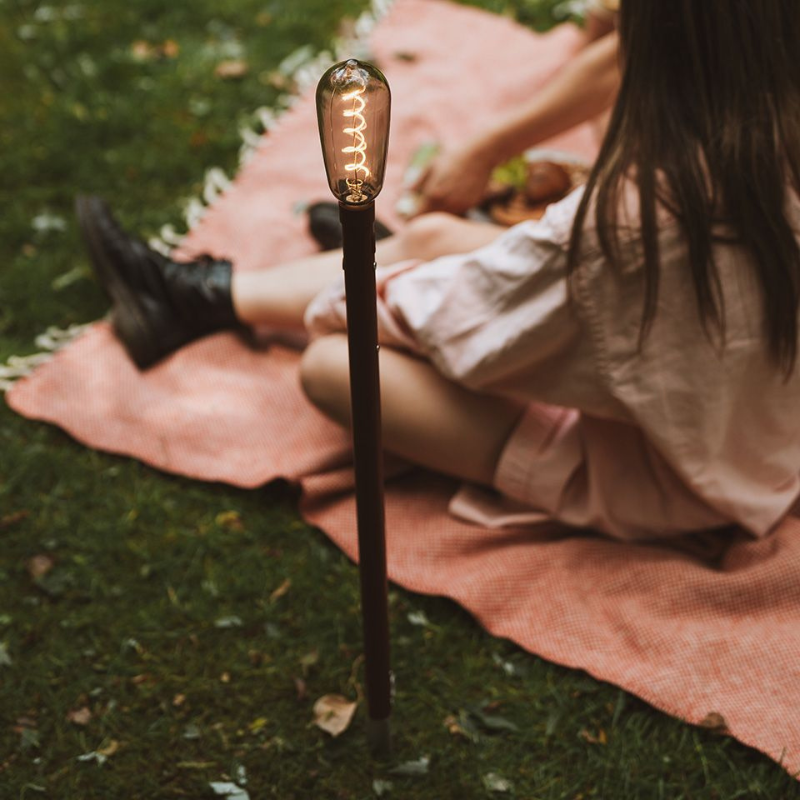 Door de pin aan de onderzijde in de grond te steken, claim je tijdelijk je eigen plek — in de tuin, het park, het bos of op het strand. De lamp is lichtgewicht en draagbaar, en dankzij het minimalistische ontwerp past hij moeiteloos in elke omgeving, zowel buiten als binnen.
