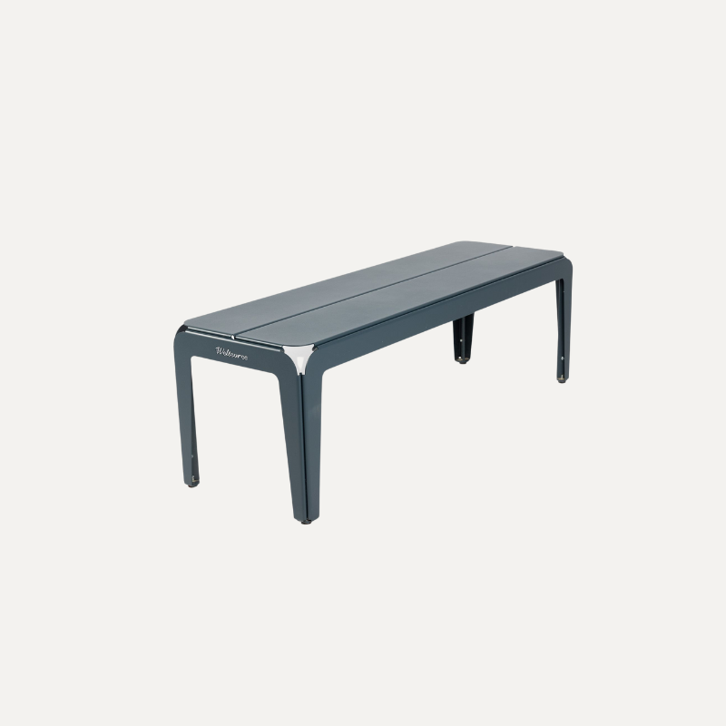 De Bended Series, ontworpen door Jaïr Straschnow, bestaat uit lichtgewicht meubels gemaakt van gepoedercoat aluminium. Door de aluminium platen in een hoek van 45 graden te buigen, ontstaat een sterke maar flexibele constructie die zich moeiteloos aanpast aan oneffenheden in de ondergrond. Geen gewiebel, geen gedoe – alleen comfort.