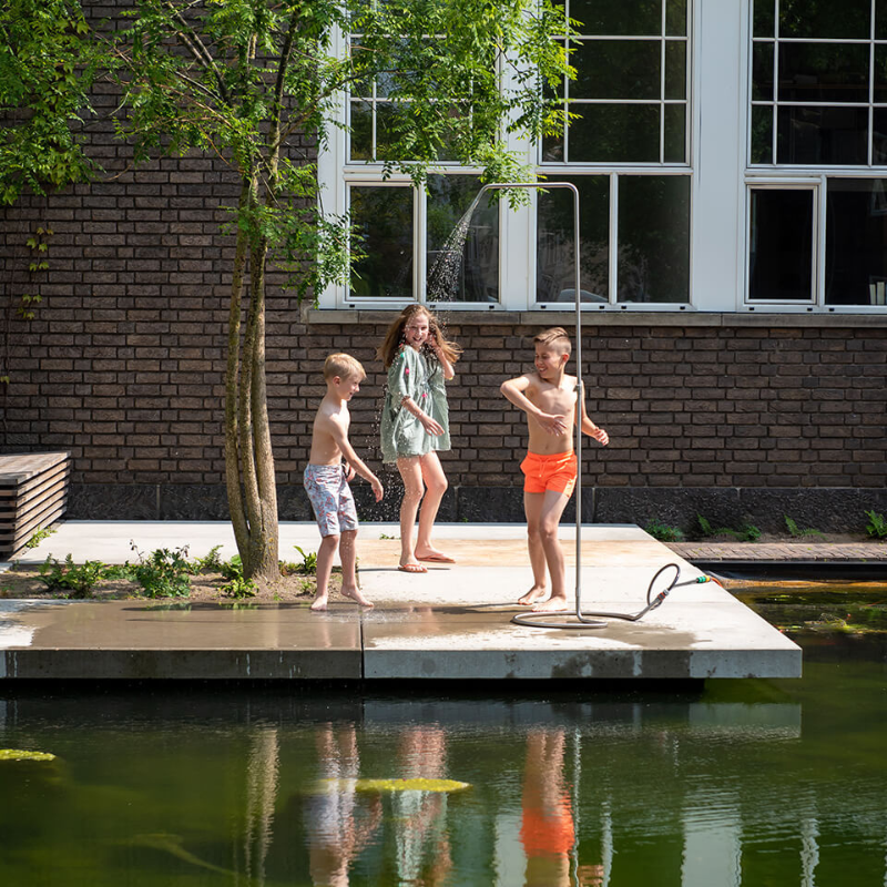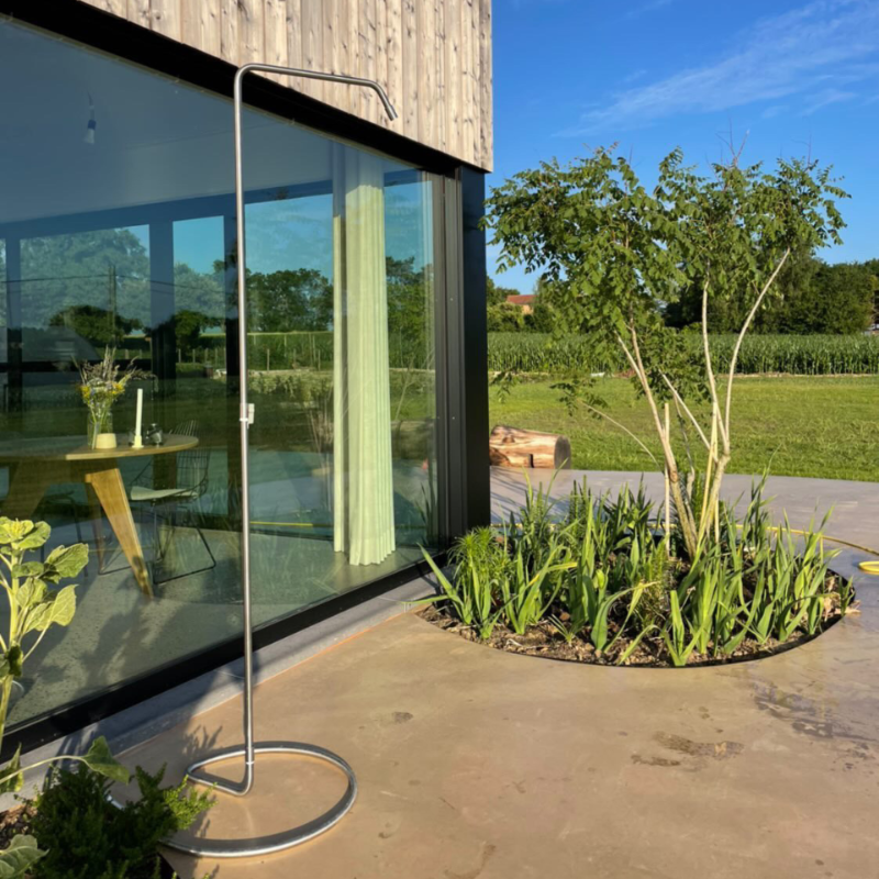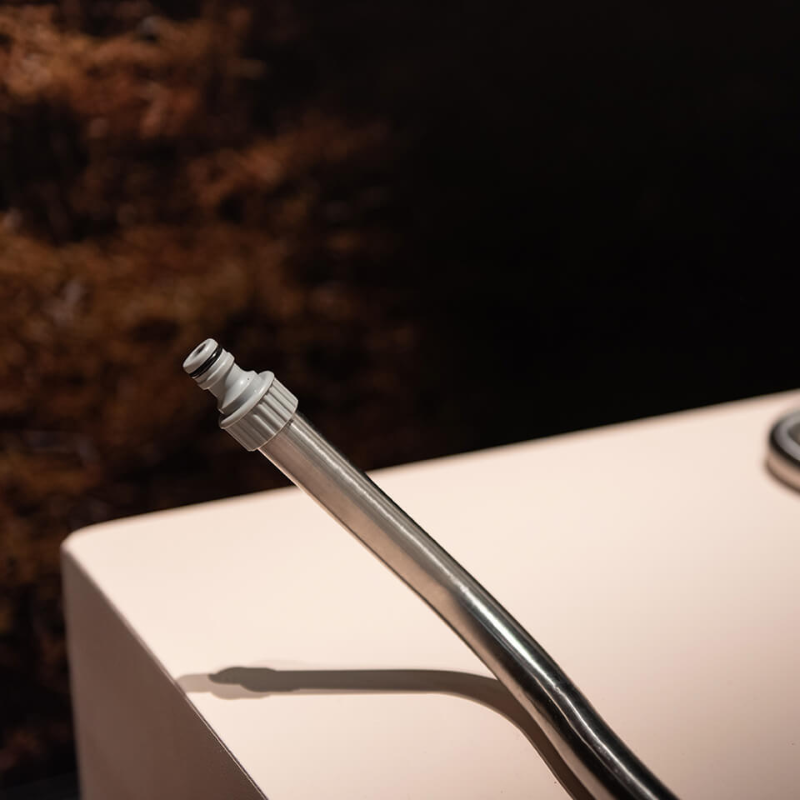 De Serpentine nodigt uit tot spontane verkoeling op hete dagen, frisse ochtenden in de tuin en ontspannen momenten na het werk. Ontworpen door Tom de Vrieze en vervaardigd uit roestvrij staal, combineert de Serpentine elegant design met praktische functionaliteit. Met een gewicht van slechts 5 kg is de buitendouche eenvoudig te verplaatsen naar elke gewenste plek. Sluit een standaard tuinslang aan en geniet op warme zomerdagen van een verfrissende douche in de buitenlucht.
