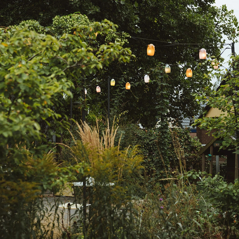 Deze 12 meter lange lichtslinger is ontworpen door Floris Schoonderbeek en zorgt voor een magische sfeer in iedere omgeving. De mondgeblazen glazen kapjes zijn uniek in vorm, gekleurd en voorzien van een beschermende coating, waardoor ze bestand zijn tegen weer en wind. Hang de Stringlight tussen de bomen achterin de tuin, boven de buitentafel of langs het balkon voor een intieme setting met warm wit of gekleurd licht.