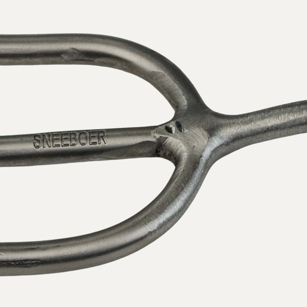 Zoals je mag verwachten van Sneeboer is ook dit gereedschap ambachtelijk gemaakt in Nederland. Het handgesmede roestvrij staal en het kersenhouten handvat geven het handrooivorkje een warme uitstraling en maken het tot een duurzaam stuk gereedschap dat alleen maar fijner wordt naarmate je het vaker gebruikt.