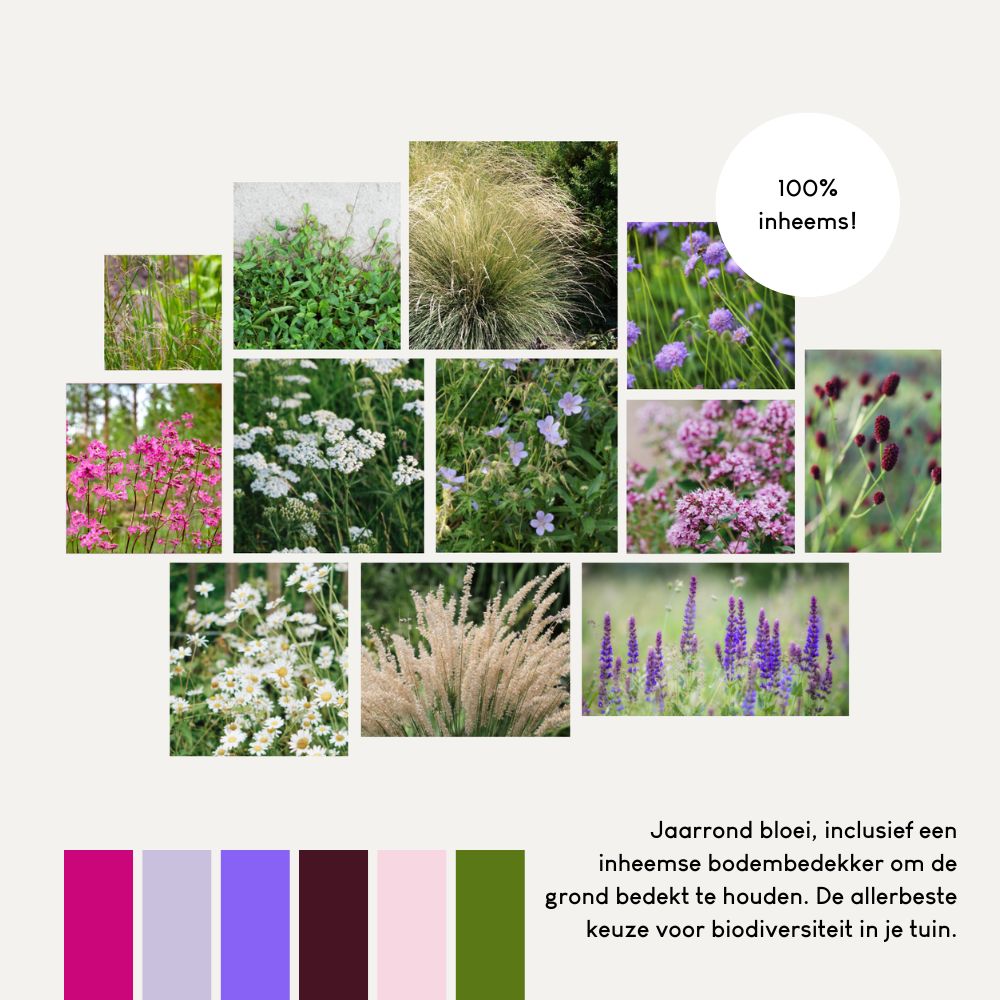 Inheemse planten groeien van oorsprong in onze omgeving en zijn nooit gecultiveerd of doorontwikkeld door kwekers. Daardoor zijn alle originele eigenschappen behouden gebleven, en juist die eigenschappen zijn zo belangrijk voor insecten. Met dit 100% inheemse borderpakket zet je enorme stappen voor de biodiversiteit in jouw tuin. Je zult zien dat je tuin een veilige haven voor allerlei insecten maar ook dieren zal worden!