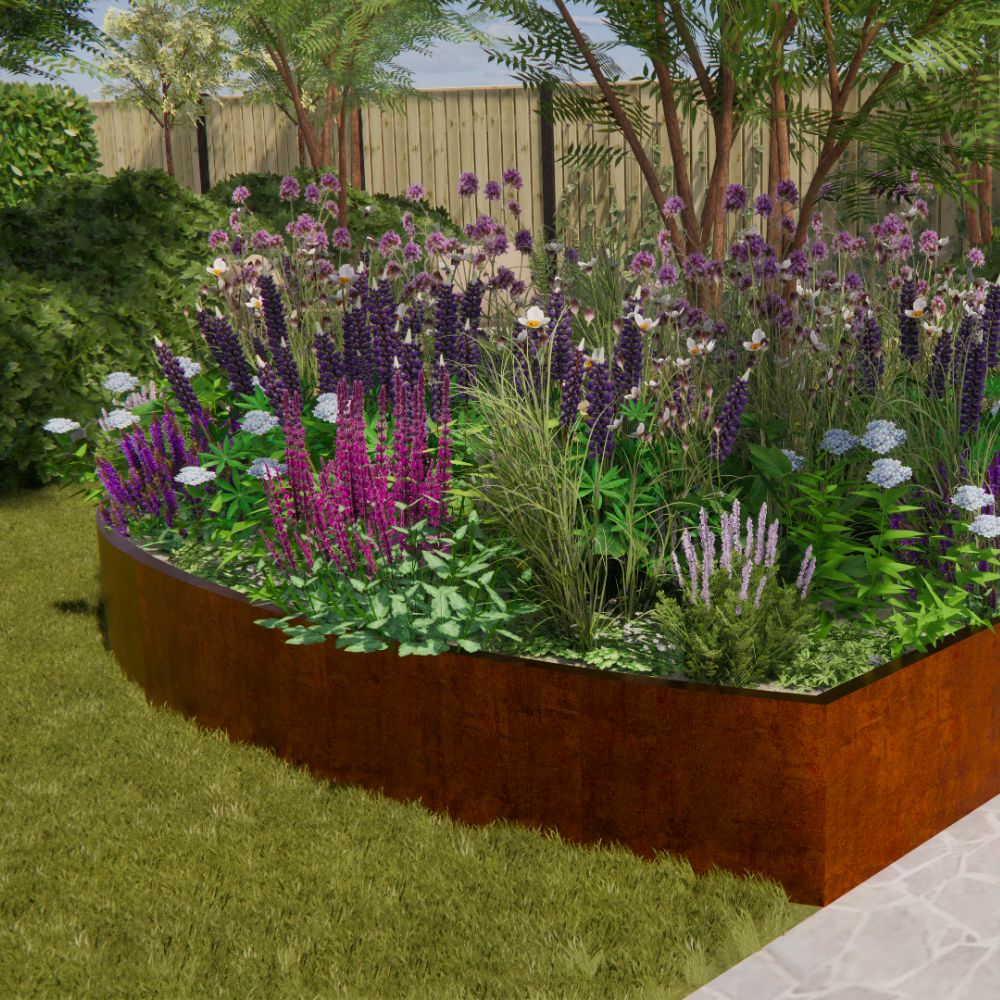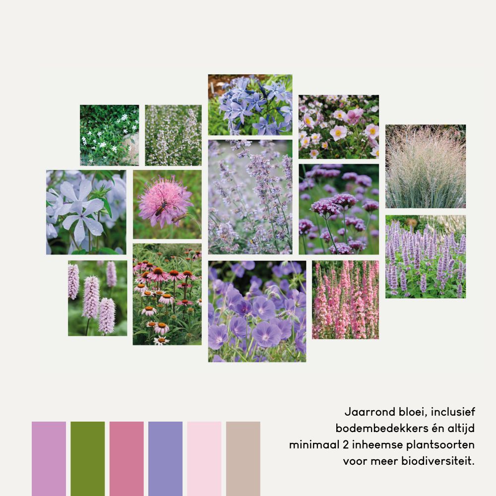 We adviseren altijd om één type borderpakket per plantvak te kiezen. Zo blijft het een geheel en komt pakket het mooiste tot z'n recht. Je kunt natuurlijk meerdere borderpakketten kiezen die je verspreid over verschillende plantvakken, want meestal heb je te maken met verschillende zonliggingen. Kies dan een overeenkomstige kleur, bijvoorbeeld paars, die in elk borderpakket terugkomt. Daardoor verbind je de plantvakken met elkaar.