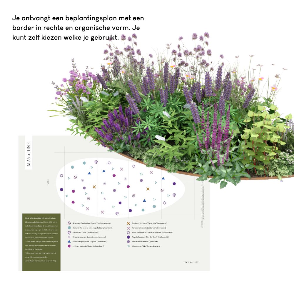 Elk borderpakket is ontworpen door tuinontwerper, schrijver en MAY & JUNE-oprichter Judith van Lent. Ze staat bekend om haar lagentheorie. Elke plant heeft een specifieke rol binnen een beplantingsplan in één van de vier lagen: structuurlaag, seizoenslaag, bodemlaag en vullerlaag. De borderpakketten zijn daarmee professioneel ontwikkeld. Waar andere partijen simpelweg vijf soorten planten in grote groepen bij elkaar zetten, is dit een beplantingsplan met dezelfde zorg en expertise waarmee we al jaren tuinliefhebbers helpen. En dat voor een heel vriendelijke prijs mét planten!