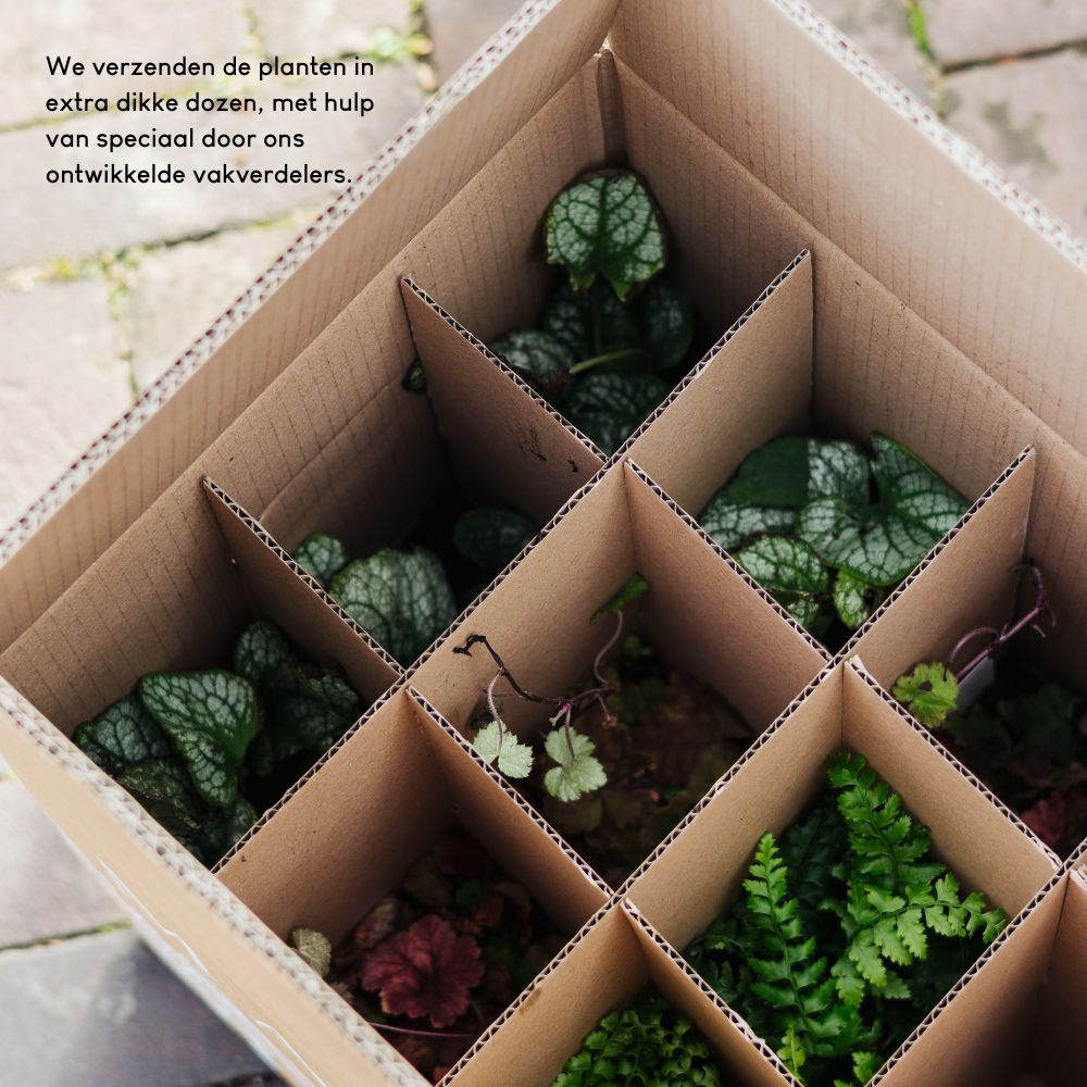 Je ontvangt je planten in stevige dozen, netjes bij elkaar verpakt. Afhankelijk van de afmeting van je borderpakket kan je levering uit meerdere dozen bestaan.
