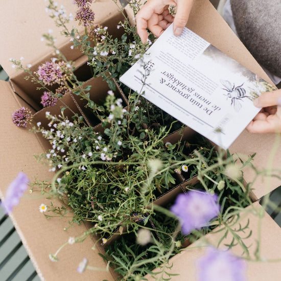 We verzenden onze borderpakketten op dinsdag, dan worden ze direct vanaf de kweker bij ons geleverd. De planten gaan in een speciaal door ons ontwikkelde doos met vakverdeling. Zo blijven de planten goed op hun plek en arriveren ze veilig bij jou.