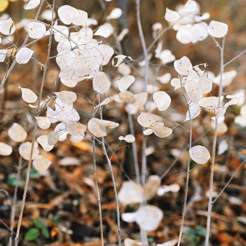 Lunaria (judaspenning of Honesty in het Engels, zo’n mooie naam) kweken de meeste mensen vooral vanwege de zaaddozen. Dat zijn zilveren schoteltjes die je fantastisch kunt gebruiken in droogkransen en droogboeketten. De gewone judaspenning bloeit paars, maar de witte is fijner en neutraler om te verwerken in een border.