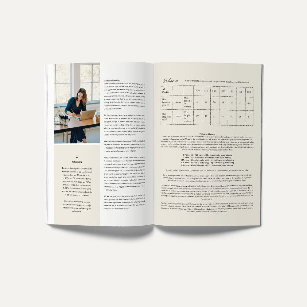 Aan het einde van de Masterclass 'Garden Design' heb je genoeg tools en kennis om zelf je tuin te ontwerpen! Het is een A4 lesboek, 122 pagina's, volledig geschreven en geproduceerd door Studio May & June. Je ontvangt daarnaast een MAY & JUNE schaalvel zodat je ook echt meteen aan de slag kunt.