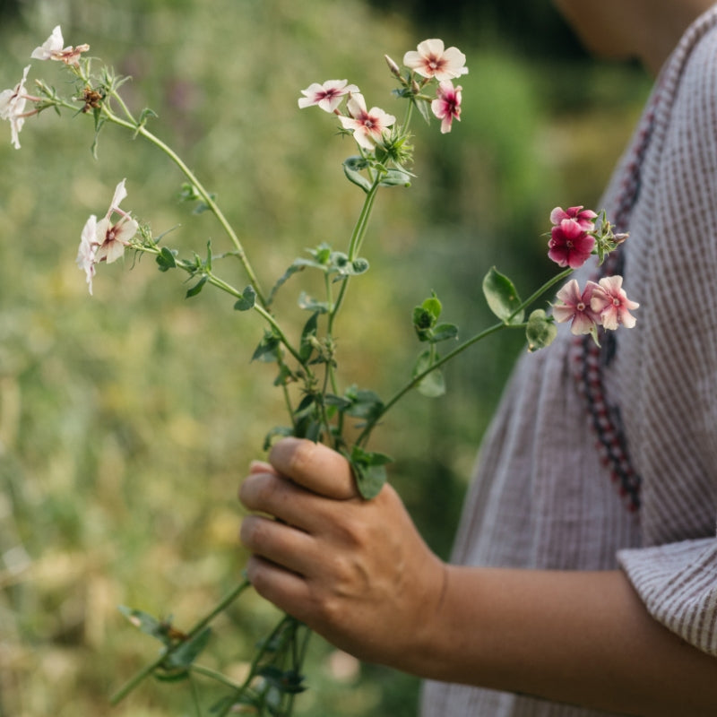 Nigella (juffertje in het groen) is áltijd goed. De bloem is uniek, zeker de soorten die we hier aanbieden. Nigella ‘Albion Green Pod’ krijgt mooie grote zaaddozen die lang goed blijven. Die kun je drogen en gebruiken in droogboeketten of droogkransen, maar als je goed blijft plukken zullen ze ook blijven bloeien, zij het wat kleiner in de tweede ronde. Wel op tijd zaaien zodat ze niet te klein blijven, zaaien in de herfst geeft grotere bloemen. Biologisch geteeld.