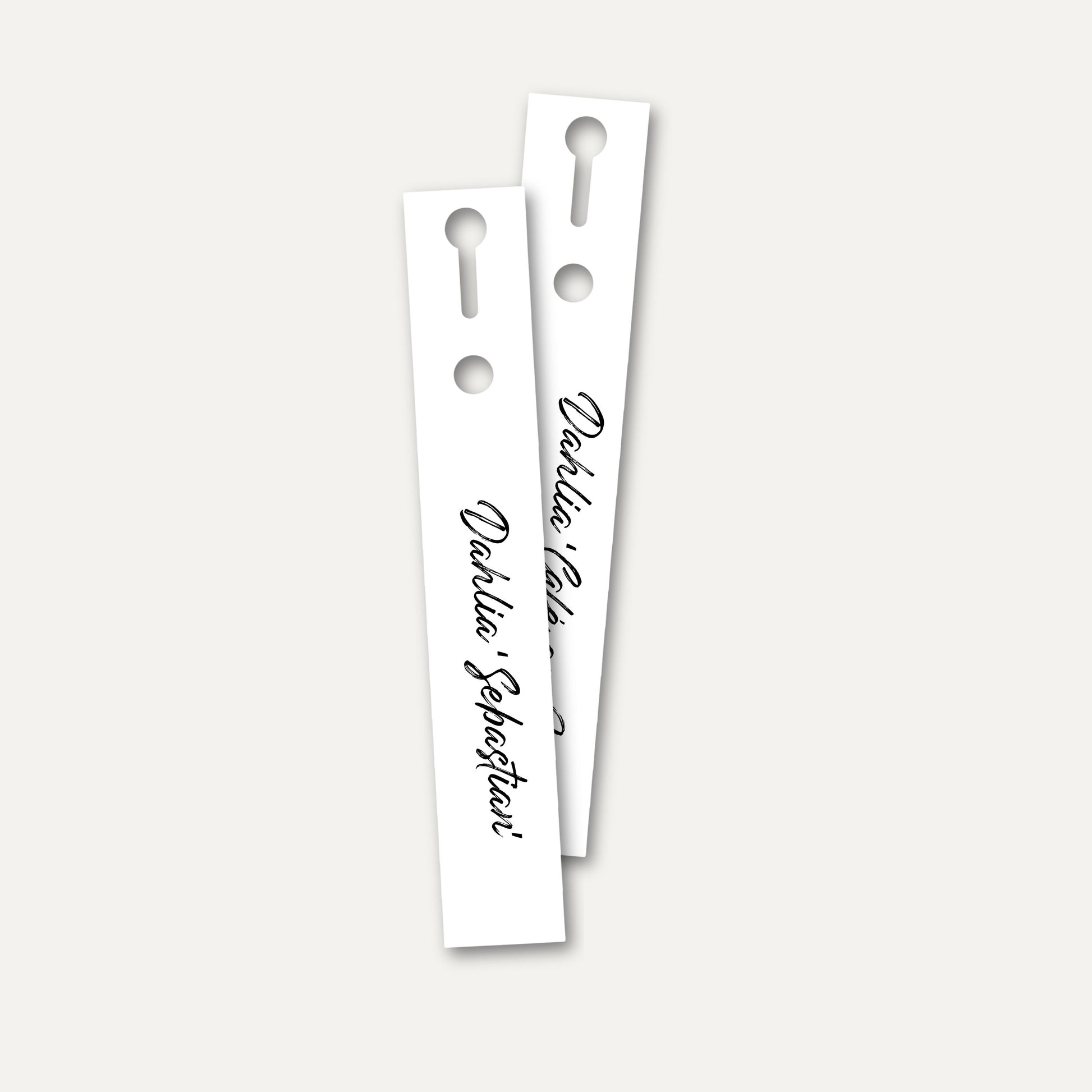 Gemaakt van duurzaam, scheurvast materiaal dat niet verkleurt of verweert. Ideaal om bij het rooien van dahlia’s de namen op te schrijven, vaste planten tijdelijk te markeren of om zaai- en stekbakken overzichtelijk te houden. Ze blijven netjes leesbaar, seizoen na seizoen.