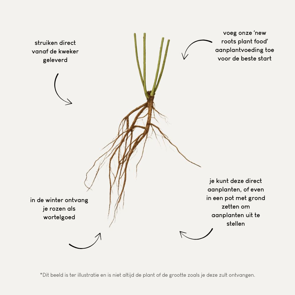 We gaan de zomer in en leveren de struiken tijdelijk nog één keer per week, namelijk op dinsdag. Ze komen direct van de kweker en arriveren vers bij jou in een duurzame en speciaal ontwikkelde verpakking. Besteld voor maandag 8.00 uur: op dinsdag verzonden.