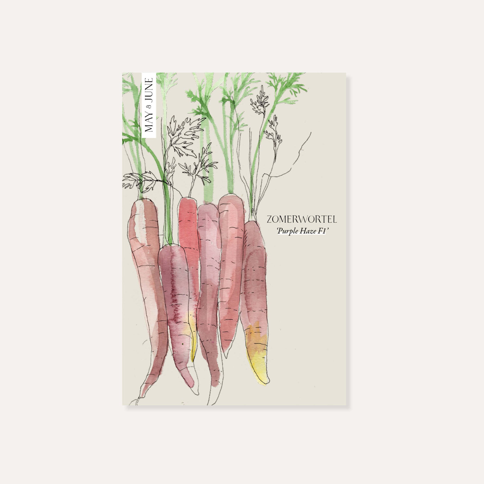 Wortels zaai je bij voorkeur op een verhoogde ‘rug’, een stukje grond dat tot een bultje is gemaakt. Als de grond goed los en luchtig is groeien wortels mooi recht en lang. Zaai een rijtje en dun na ontkiemen uit tot een afstand van ca. 5 cm. Voor dikkere wortels kun je er meer ruimte tussen laten. Tussen de rijen laat je ca. 20 cm ruimte. Direct zaaien kan tussen maart en juli. Voor een langere oogst zaai je meerdere keren. Gebruik insectengaas om de planten af te dekken om ze te beschermen tegen de wortelvlieg.